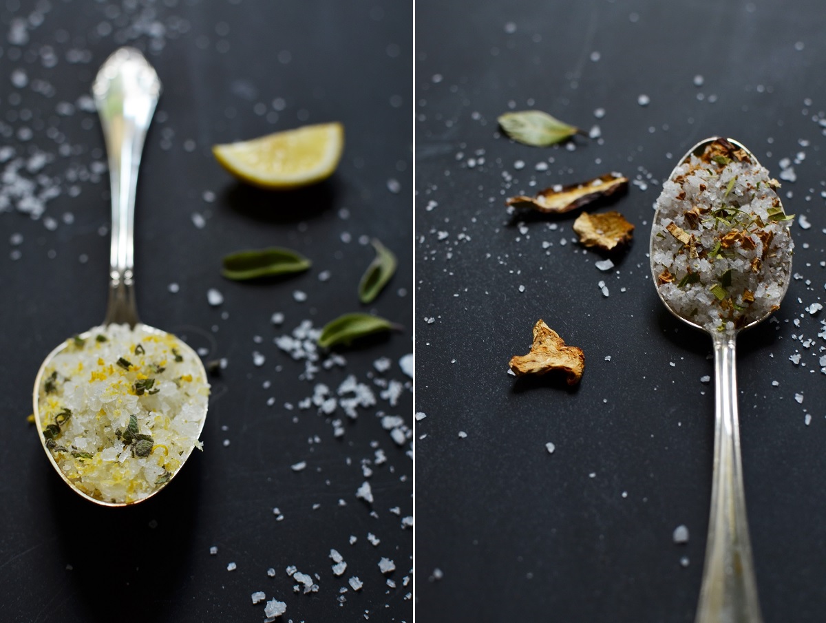 Ich wollte gerne ein frisches Salz machen, mit Zitrone und ein eher fast schon herbstiges mit Pilzen.